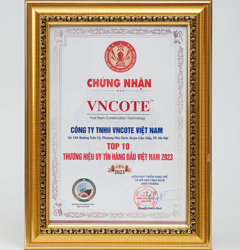 - Năm 2023 VNCOTE tự hào khi đạt danh hiệu TOP 10 Thương hiệu uy tín hàng đầu Việt Nam